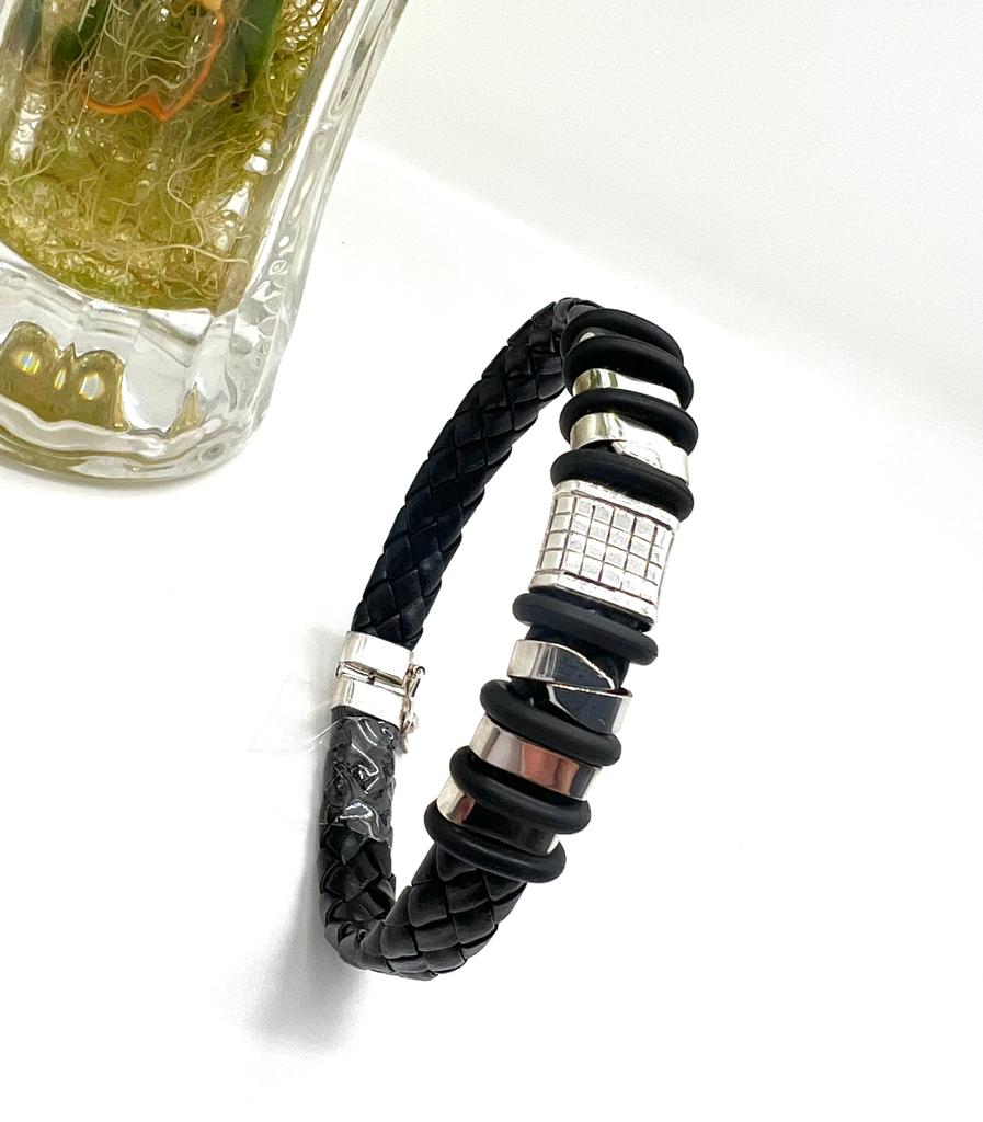 Pulseras Modernas de Plata y Cuero.