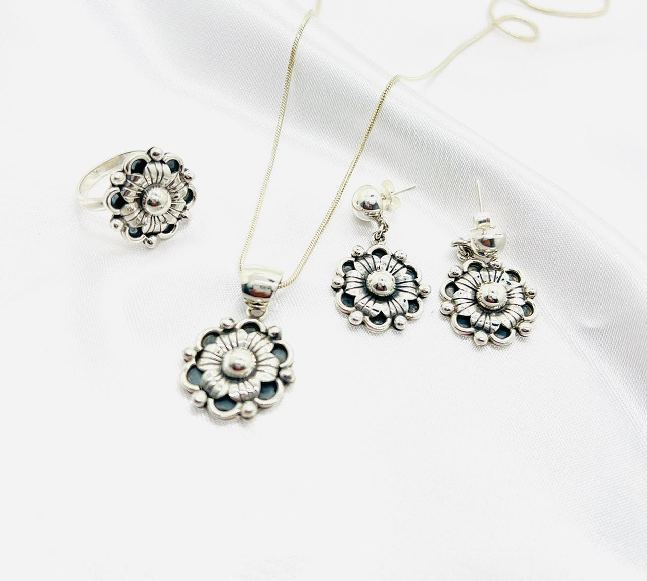 Set de Flores 6 Petalos ( Aretes, Dije con Cadena, Anillo).