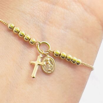 Pulsera Catolica con Crucifijo en Oro 18 K